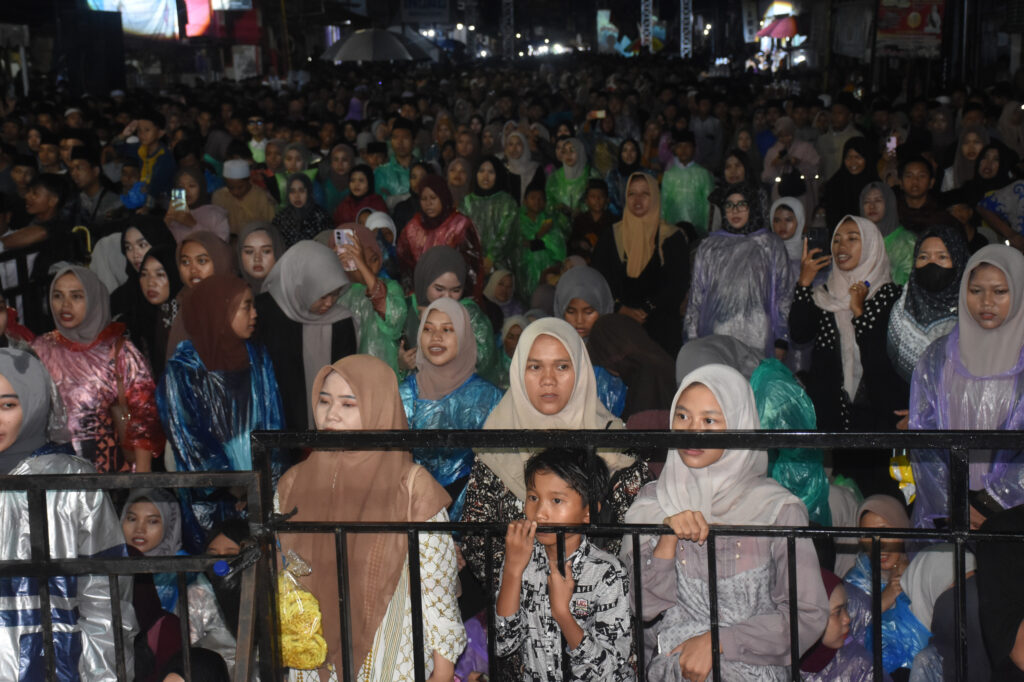 “Malam hari ini dalam rangka Kabupaten Pekalongan Bersholawat. Kegiatan yang kita bagi-bagi (lokasi) ini adalah salah satu cara kita lakukan untuk mengetuk pintu langit,” ujar Bupati Fadia.