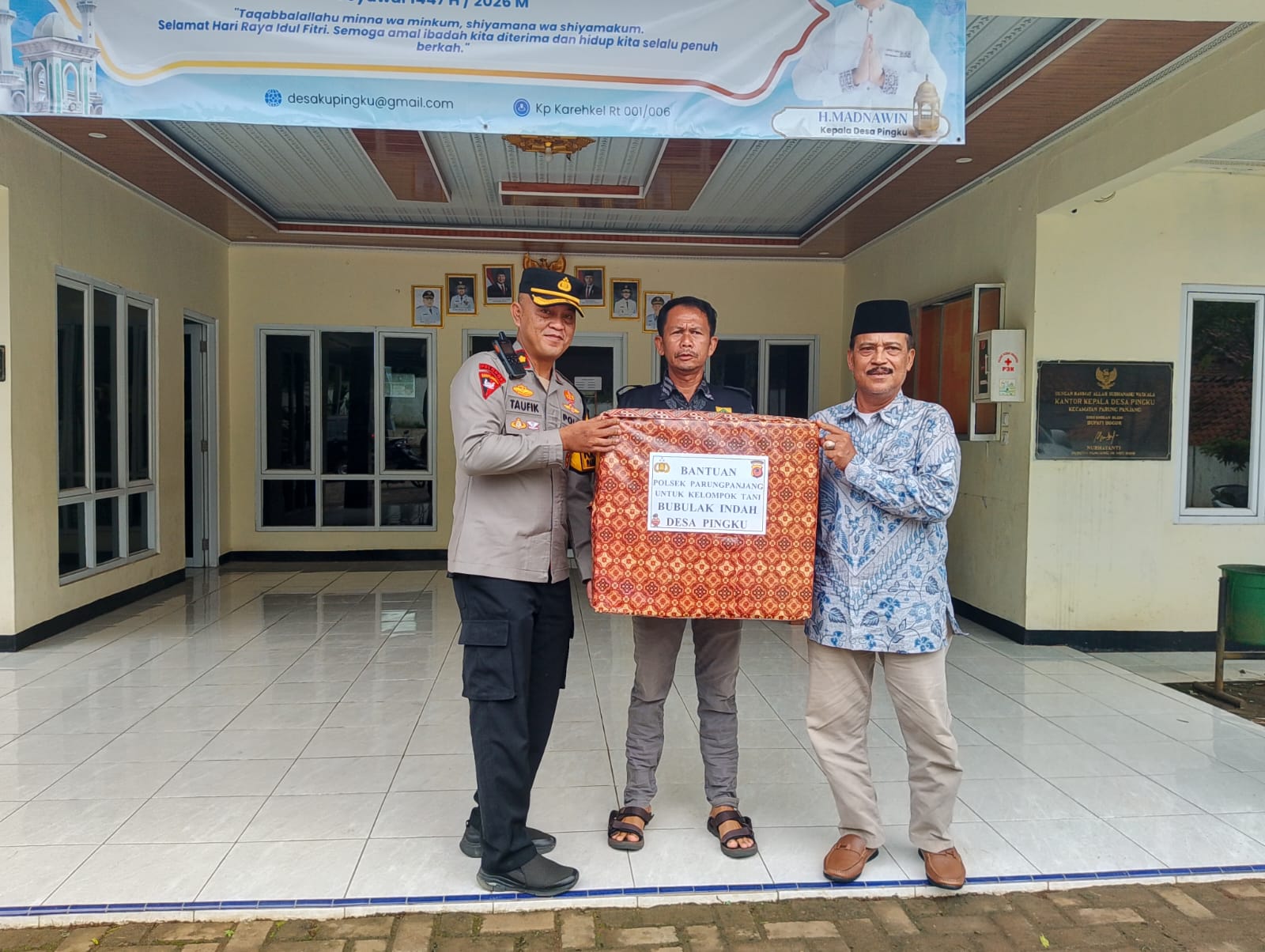 BOGOR, Dinamikaxpress.com – Upaya mendukung program ketahanan pangan nasional terus digencarkan hingga tingkat desa. Salah satunya dilakukan oleh Kapolsek Parungpanjang, Taufik, yang menyerahkan bantuan alat pertanian kepada Kelompok Tani Desa Pingku, Kecamatan Parungpanjang, Kabupaten Bogor, Jumat (27/03/2026).