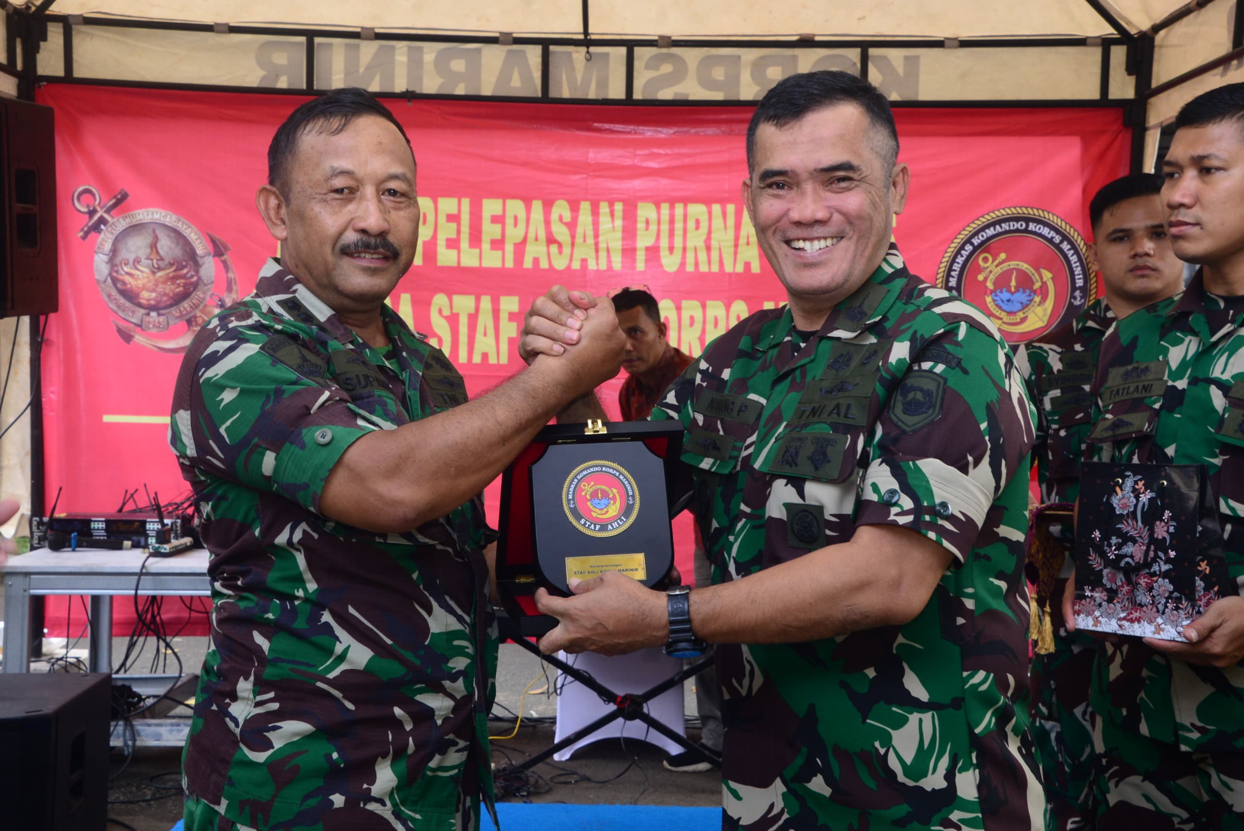 Acara diawali dengan sambutan dari Koordinator Staf Ahli Komandan Korps Marinir (Koorsahli Dankormar), Kolonel Marinir Nanang Purwoko, dilanjutkan dengan penyerahan tali asih kepada para Perwira yang akan purna tugas serta mutasi. Kegiatan ditutup dengan doa bersama dan ramah tamah dalam suasana hangat dan penuh kekeluargaan. Adapun Perwira yang memasuki masa purna tugas adalah Kolonel Marinir Supardi, Kolonel Marinir Wahyu Agus Widayat. Sementara perwira yang melaksanakan mutasi ke Skomlek Mabesal adalah Kolonel Marinir Sugiyanto.