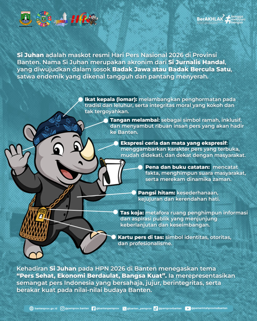 Melalui kehadiran Si Juhan, HPN 2026 diharapkan tidak hanya menjadi ajang perayaan insan pers, tetapi juga momentum refleksi peran strategis pers dalam menjaga demokrasi dan membangun bangsa. Masyarakat dan insan pers dari seluruh Indonesia diajak untuk turut hadir dan meramaikan puncak peringatan Hari Pers Nasional 2026 di Provinsi Banten. (Wans)